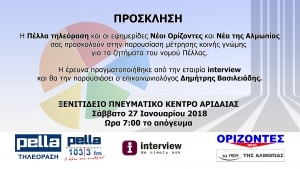 Πρόσκληση σε ημερίδα της PELLA TV, Νέοι Ορίζοντες, ΝΈΑ της ΑΛΜΩΠΙΑΣ και της INTERVIEW – Δημοσκοπήσεις, με θέμα τα προβλήματα του Νομού και οι προοπτικές του.