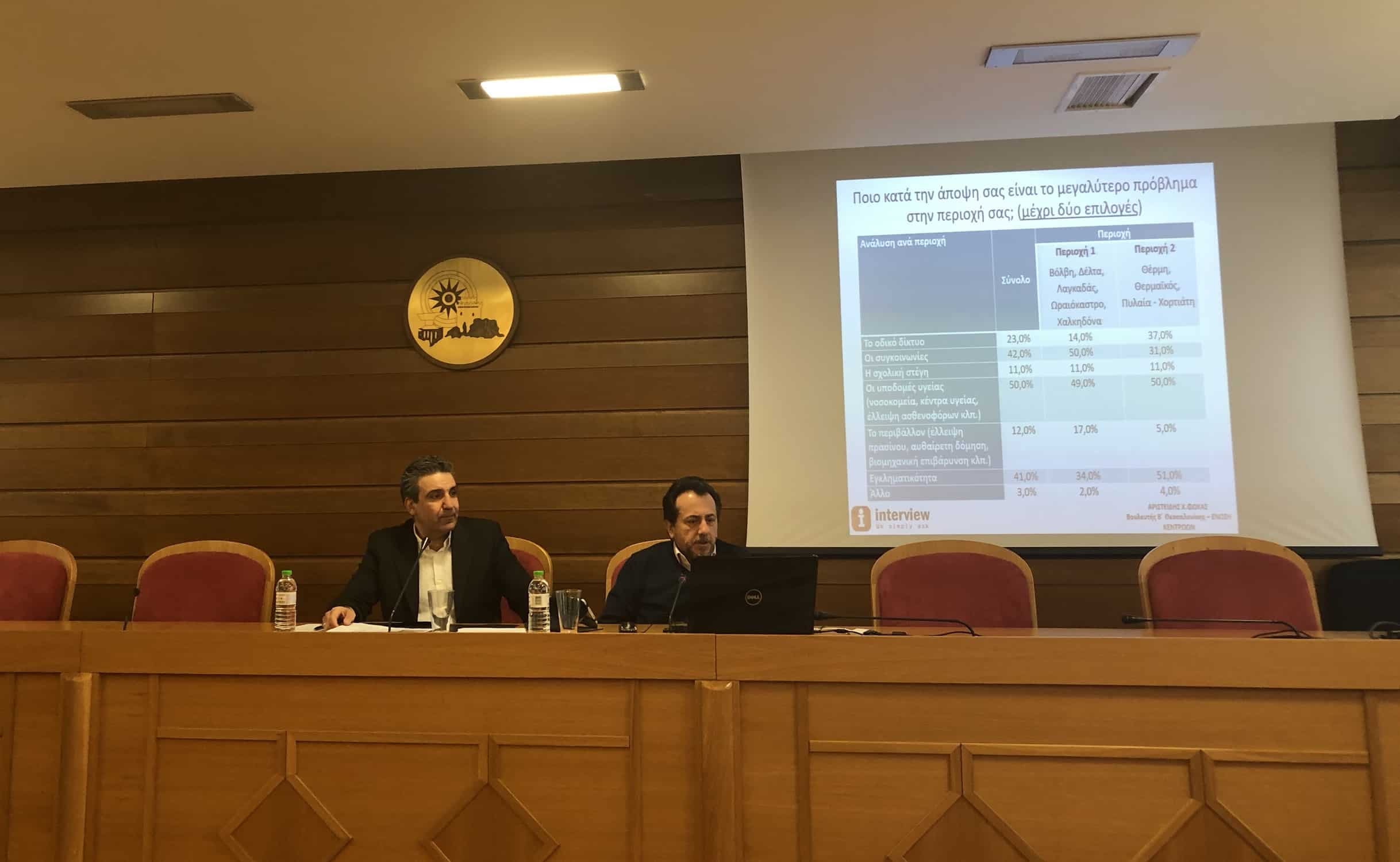 Με την συμμετοχή μεγάλου αριθμού Μέσων Μαζικής Ενημέρωσης, παρουσιάστηκε σε συνέντευξη τύπου, η έρευνα που διενεργήθηκε για λογαριασμό του Βουλευτή της Ένωσης Κεντρώων στην Β΄ εκλογική Περιφέρεια Θεσσαλονίκης, Αριστείδη Φωκά. Η έρευνα είχε ως στόχο την καταγραφή, ιεράρχηση και ανάδειξη των προβλημάτων της συγκεκριμένης εκλογικής Περιφέρειας (8/3/2018).
